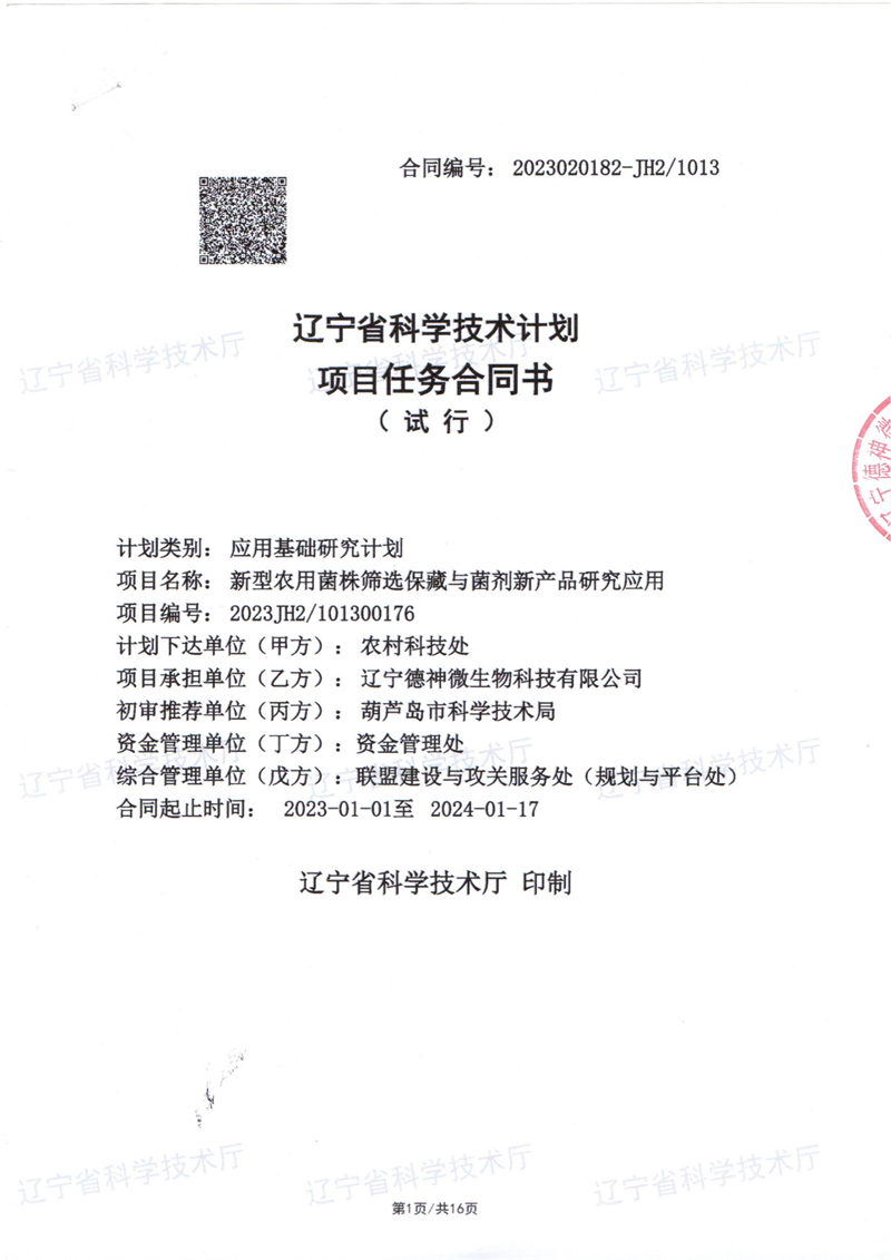 遼寧省科技計(jì)劃:新型農(nóng)用菌株篩選保藏與菌劑新產(chǎn)品研發(fā)應(yīng)用項(xiàng)