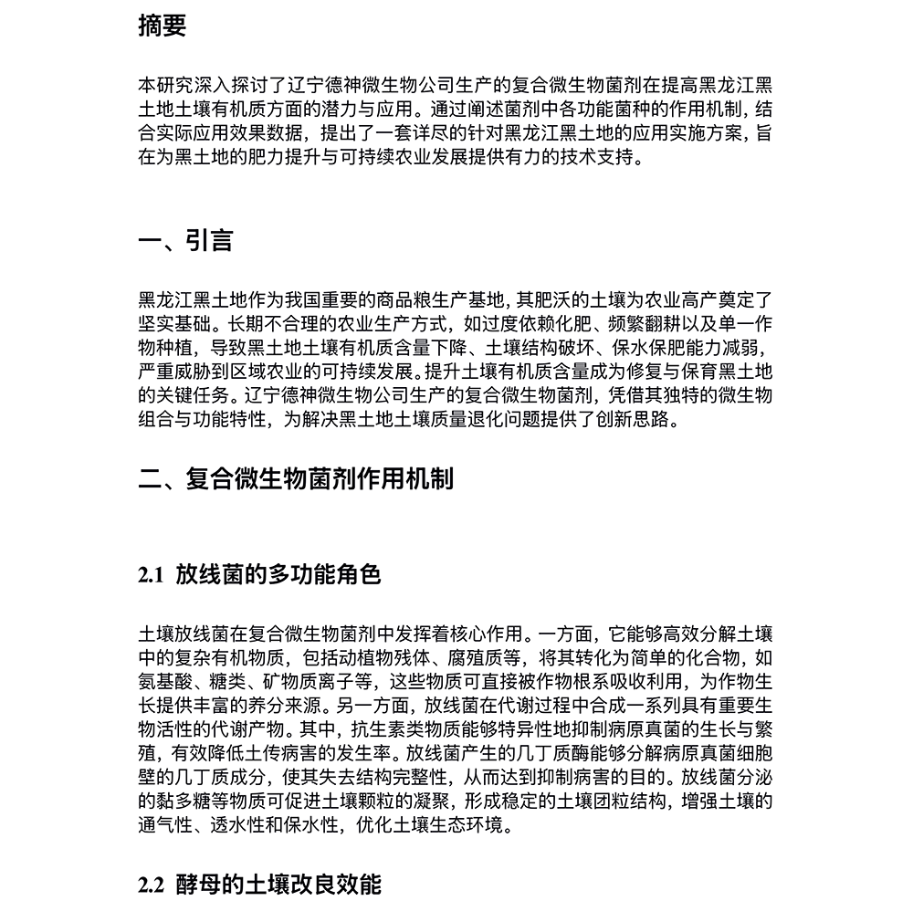 復(fù)合微生物菌劑提升黑龍江黑土地土壤有機(jī)質(zhì)的研究與應(yīng)用方案