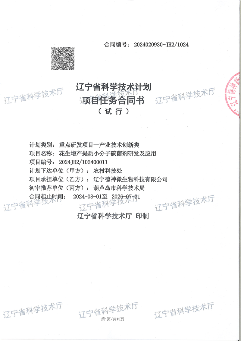 遼寧省科技計(jì)劃:花生增產(chǎn)提質(zhì)小分子碳菌劑研發(fā)及應(yīng)用